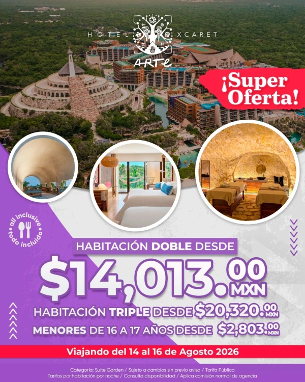 Contamos con los mejores precios del mercado en viajes nacionales e internacionales, así cómo los más exclusivos complejos hoteleros de México.